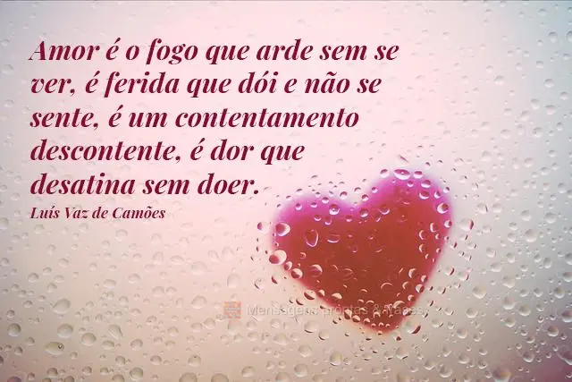 Amor é o fogo que arde sem se ver, é ferida que dói e não se sente, é um contentamento descontente, é dor que desatina sem doer. Luís Vaz de Camões #amor