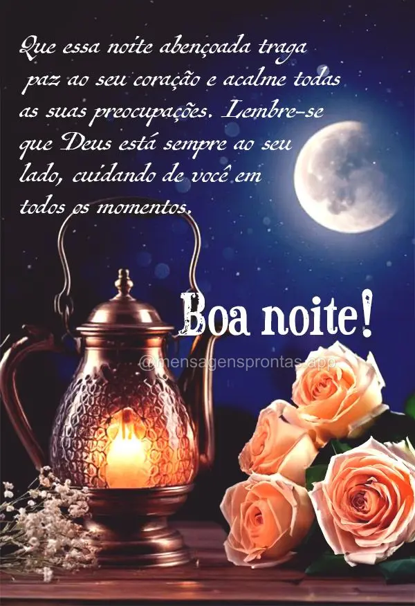 Que essa noite abençoada traga paz ao seu coração e acalme todas as suas preocupações. Lembre-se que Deus está sempre ao seu lado, cuidando de você em todos os momentos. Boa noite! #boa noite