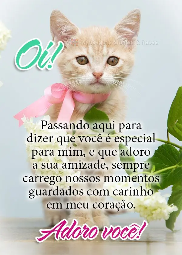 Oi! Passando aqui para dizer que você é especial para mim, e que adoro a sua amizade, sempre carrego nossos momentos guardados com carinho em meu coração. Adoro você! #amizade #mensagens de amizade #adoro você