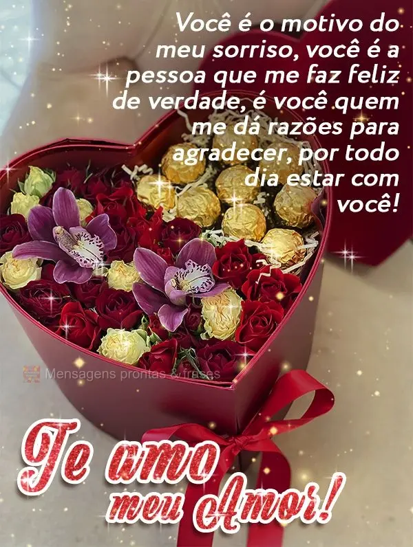 Você é o motivo do meu sorriso, você é a pessoa que me faz feliz de verdade, é você quem me dá razões para agradecer, por todo dia estar com você! Te amo meu Amor! #eu te amo