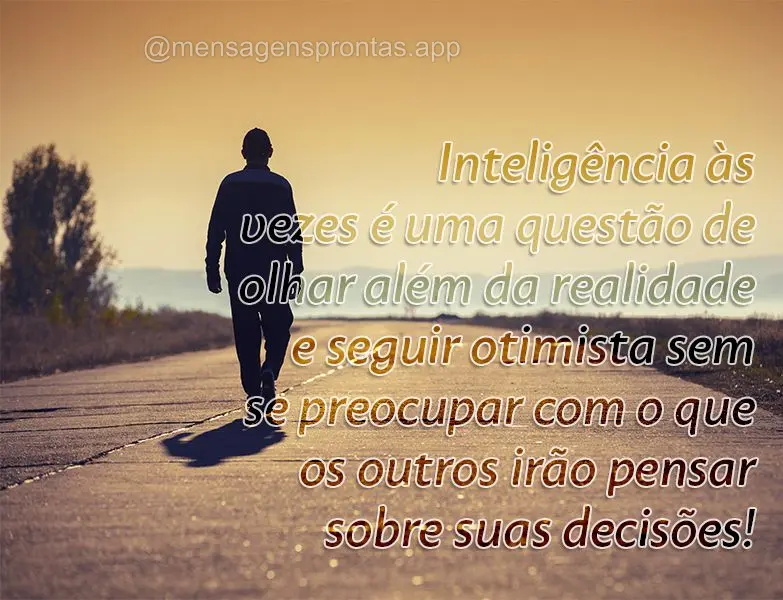 Inteligência às vezes é uma questão de olhar além da realidade e seguir otimista sem se preocupar com o que os outros irão pensar sobre suas decisões! #mensagens de reflexão #reflexão