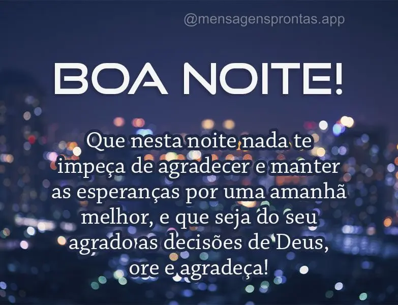 Que nesta noite nada te impeça de agradecer e manter as esperanças por uma amanhã melhor, e que seja do seu agrado as decisões de Deus, ore e agradeça! Boa noite! #boa noite