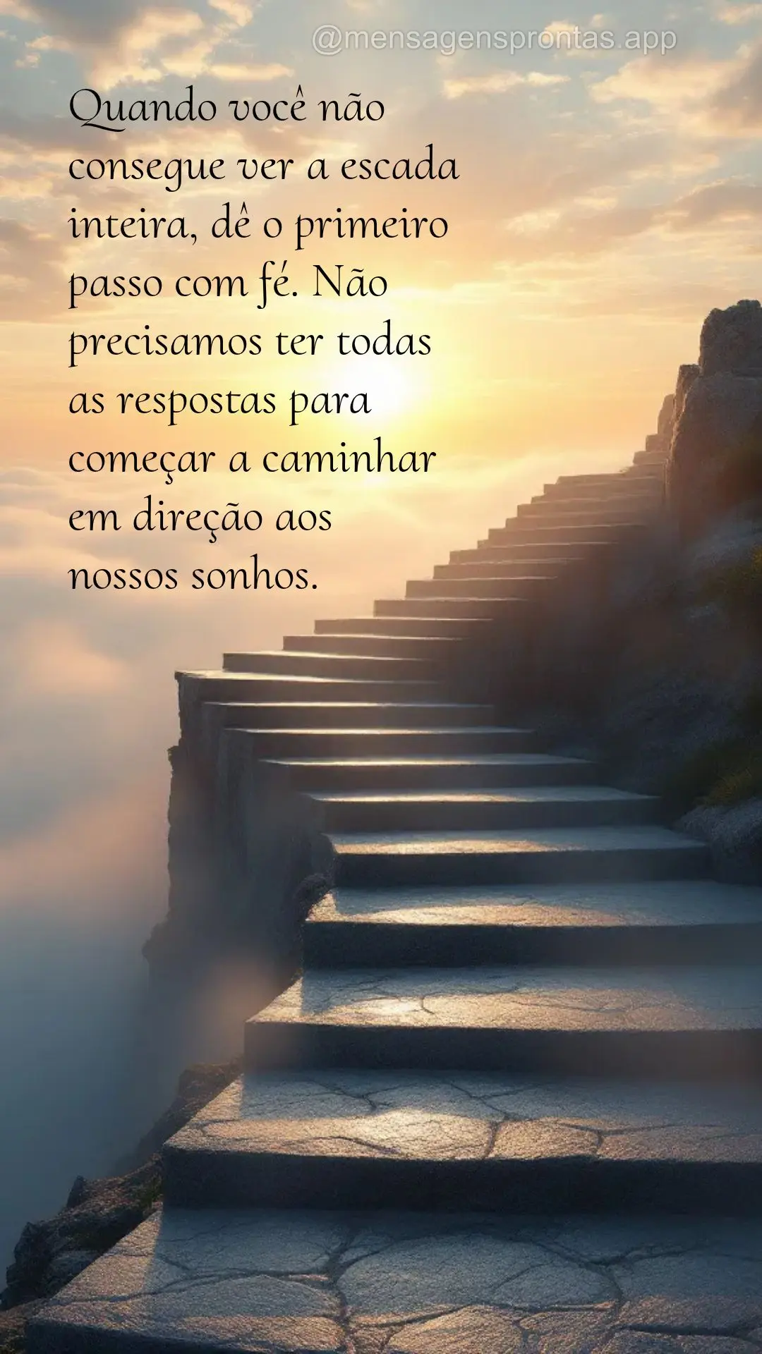 Quando você não consegue ver a escada inteira, dê o primeiro passo com fé. Não precisamos ter todas as respostas para começar a caminhar em direção aos nossos sonhos. #fé