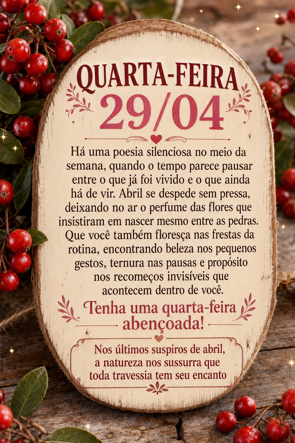 A gratidão não muda o passado, mas transforma completamente o presente. É impossível sentir-se pobre enquanto se conta as riquezas que já se tem. 29/04 Quarta-feira #datas